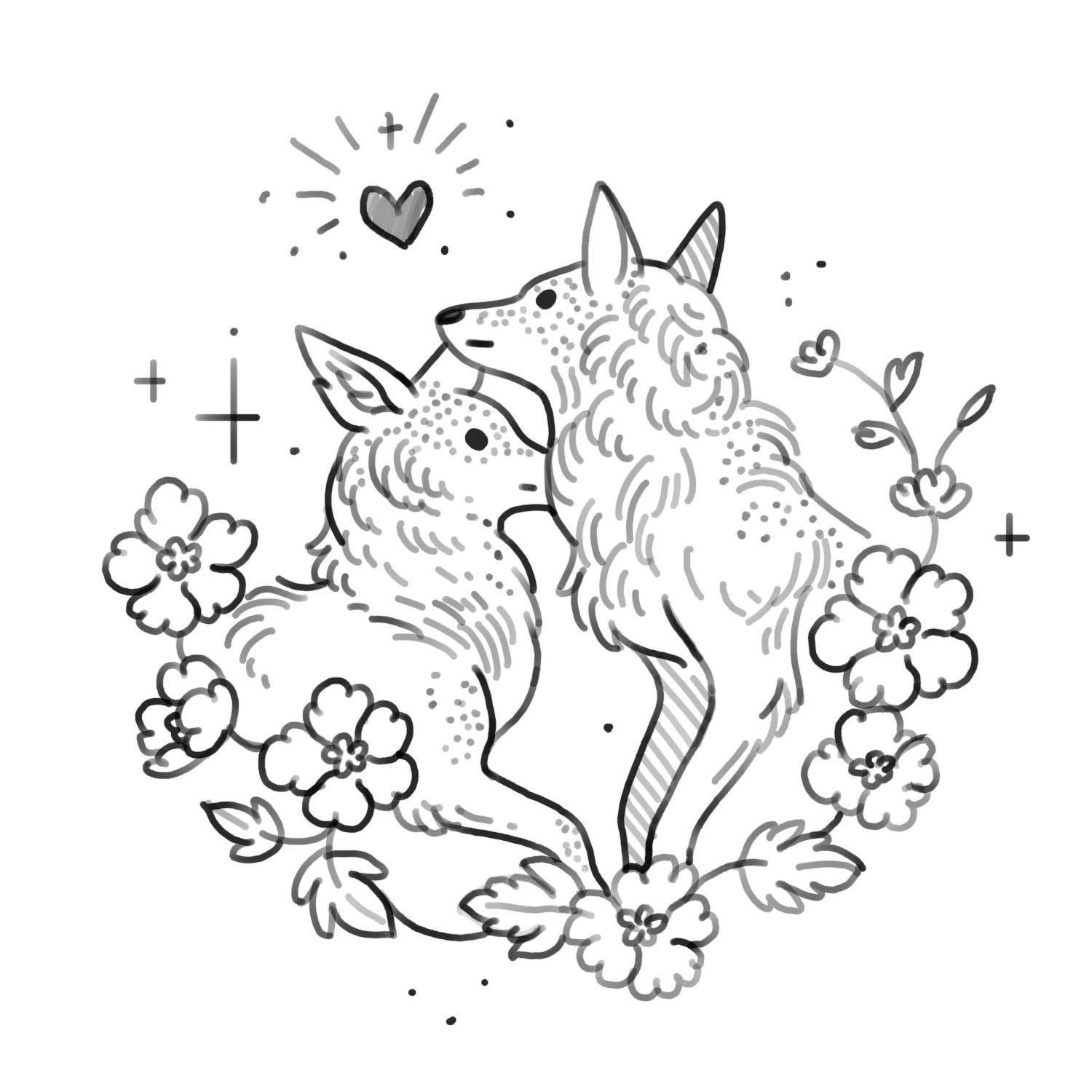 Two cuddling coyotes.